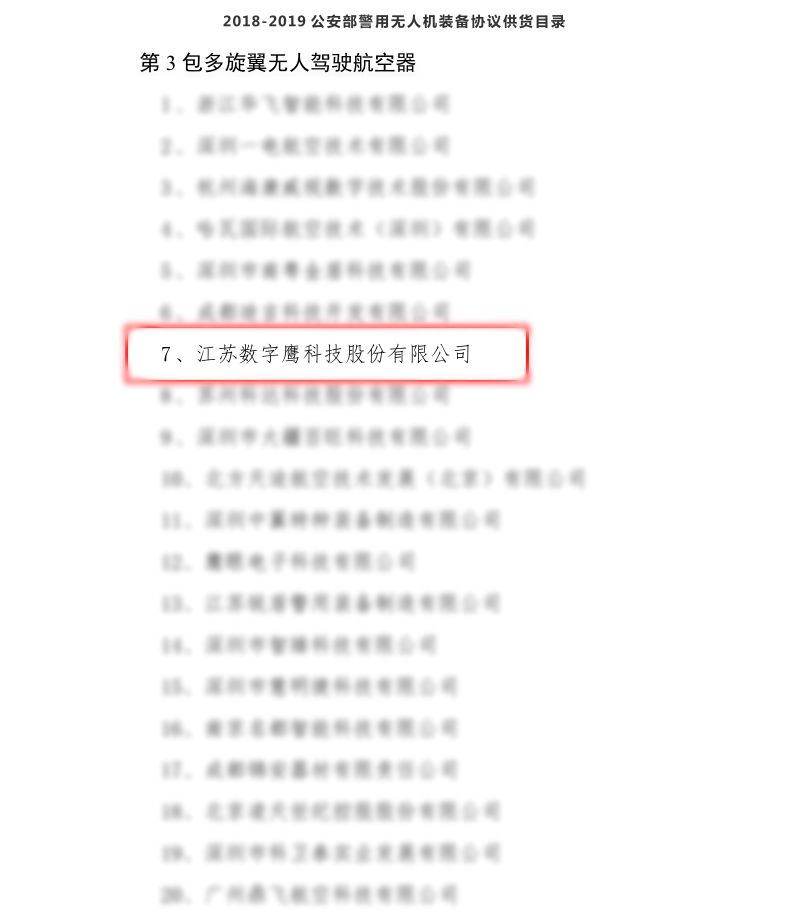 此次数字鹰科技产品入围公安部警采中心项目,意味着从现在到2020年年底,全国公安系统的单位均可采购数字鹰警用无人机以及无人机反制设备。